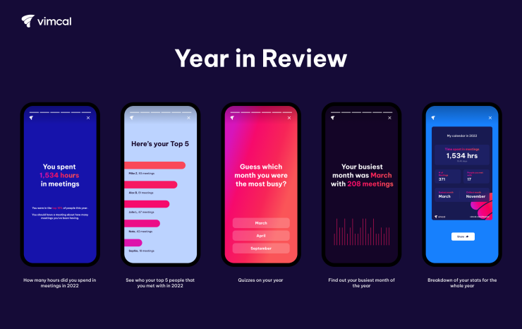 Remote work calendar plug-in Vimcal recently launched a 'Vimcal Rewind' feature for all of their mobile app users. The feature analyzes users'