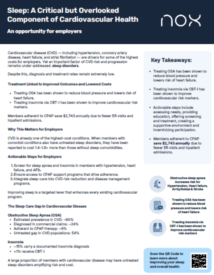 Cardiovascular disease remains one of the most expensive conditions for employers, yet a key driver often goes unaddressed: sleep health. Many employees with conditions like hypertension, heart failure, and atrial fibrillation also experience untreated sleep disorders, increasing both risk and costs.