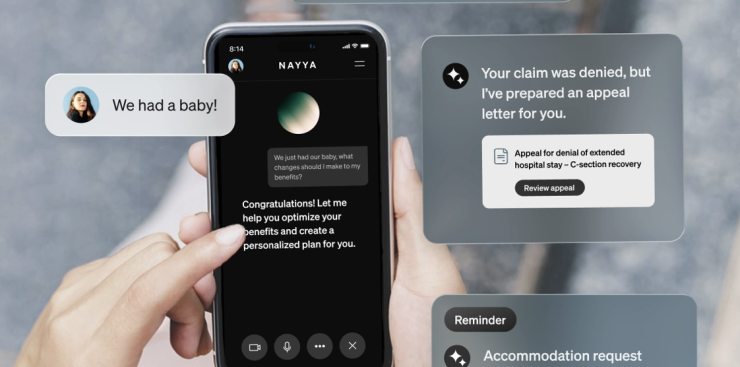 At Nayya, AI is integrated into a company's existing programs, including its human resources information system and benefits platforms, along with