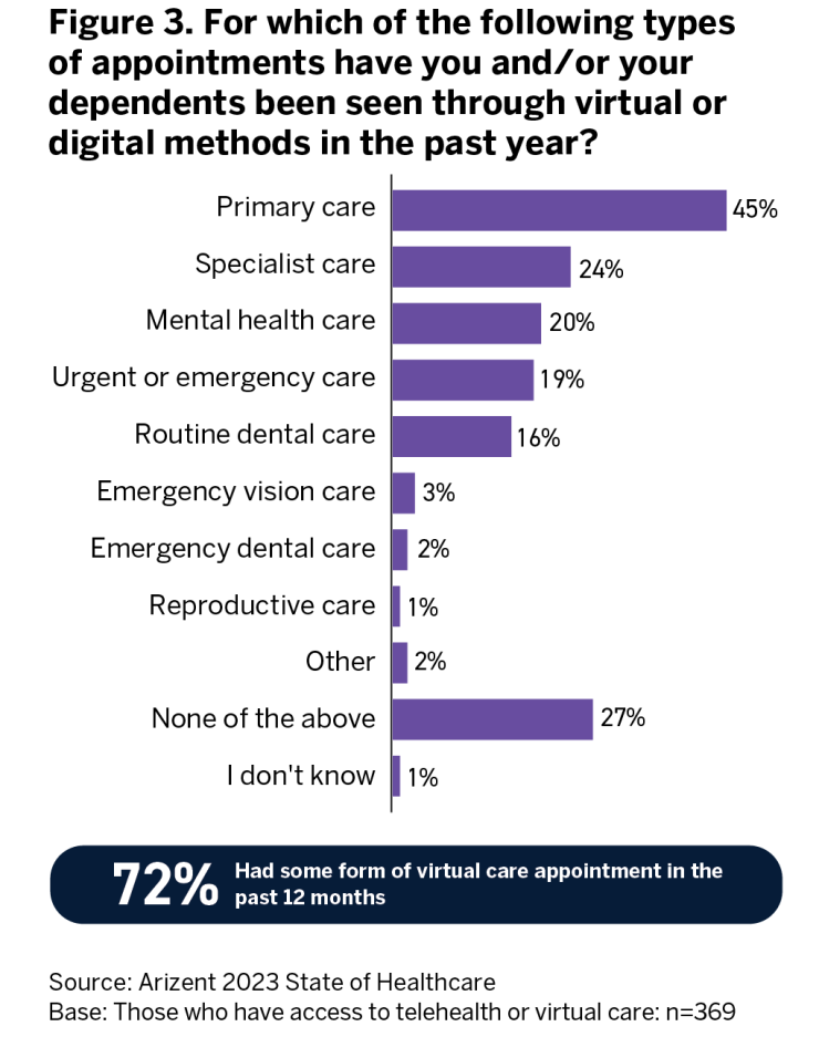 A majority of respondents noted that telehealth did not increase the number of appointments they booked — although this statement may ring less true depending on the employee's generation. Half of Gen Z employees did report their number of appointments increasing, at least by a little. Of course, a certain familiarity with technology will play a role in whether employees feel comfortable accessing their care via phone call, text or video call.