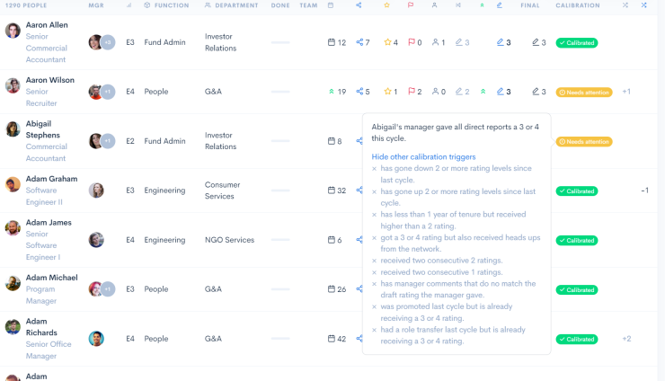 Traditionally, performance reviews are often at the whim of managers, and it can take HR months to assess whether leaders in relevant departments find each other's ratings consistent. Otherwise known as calibration, HR teams will put functionally-related managers in a room and run through every employee, asking if they seem to have been rated fairly.