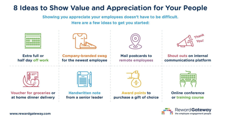 Employee Appreciation Day is a great reminder to show employees they are valued. Whether or not your team has an activity planned for March 4, appreciation isn’t a one-and-done activity, and the following are some easy ways to say “thank you” — from extra time off work to a voucher for groceries and entertainment.